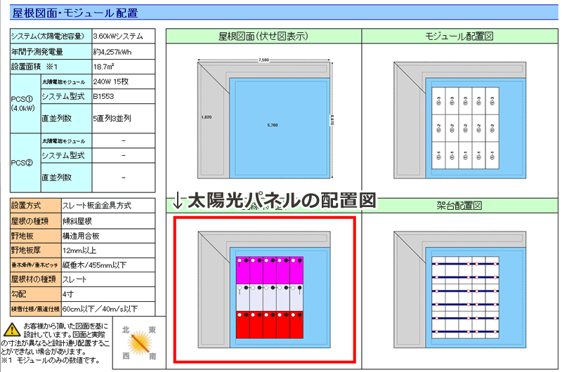 240Wの太陽光パネル15枚で、合計3.6kW。